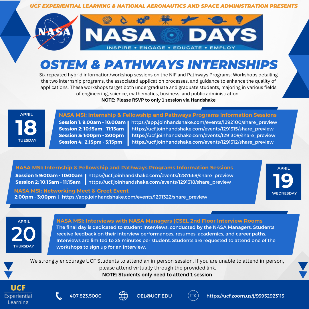 Six repeated hybrid information/workshop sessions on the NIF and Pathways Programs: Workshops detailing the two internship programs, the associated application processes, and guidance to enhance the quality of applications. These workshops target both undergraduate and graduate students, majoring in various fields of engineering, science, mathematics, business, and public administration.